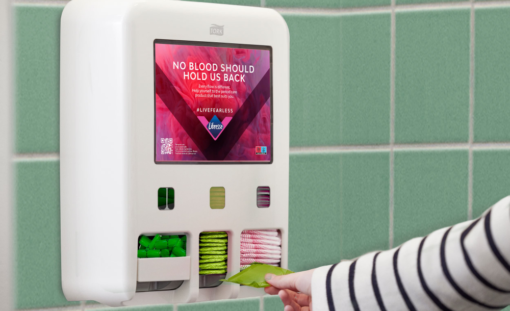 Intīmās higiēnas preču dozators palīdz veidot iekļaujošāku un drošāku vidi, nodrošinot piekļuvi higiēnas produktiem ikvienā situācijā. Tas ir savienojams ar Libresse sieviešu higiēnas produktu uzpildēm, vienā dozatorā iespējams izmantot dažādus produktus, pielāgojot piedāvājumu lietotāju vajadzībām. Piemērots higiēniskajām paketēm, tamponiem un ikdienas ieliktnīšiem.
