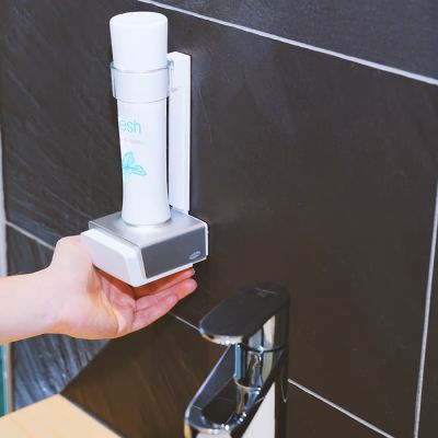 Priekšpusē izvietotais spiedpogas mehānisms ļauj dozatoru ērti lietot ar vienu roku un nodrošina vienmērīgu devas dozēšanu. Dozators paredzēts stiprināšanai pie sienas, nodrošinot drošu un estētisku risinājumu dušās, pie vannām vai izlietnēm.