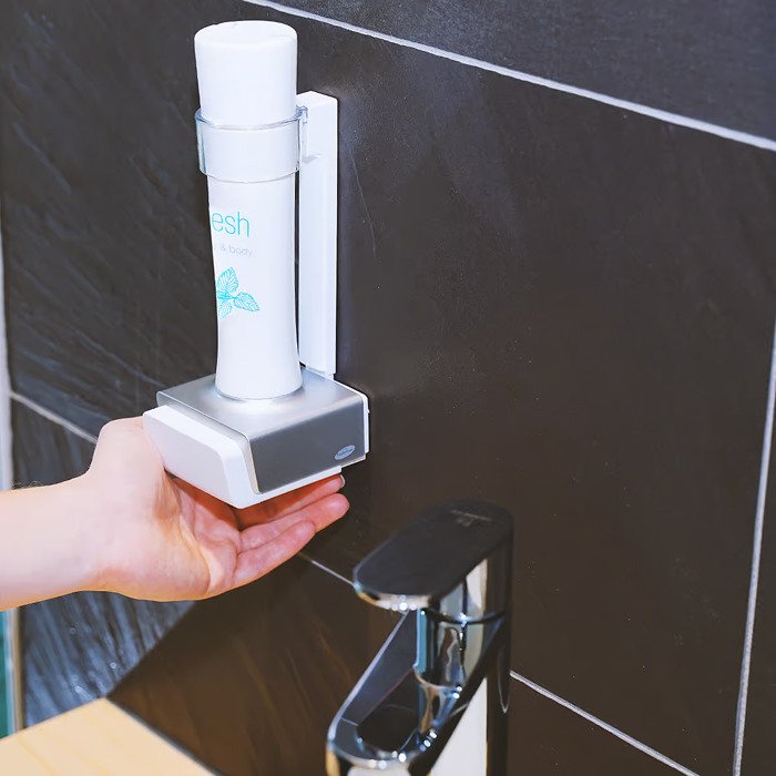 LUNA SHOWERMAID dozators ir funkcionāls un vizuāli elegants risinājums viesnīcu, SPA centru un īstermiņa īres dzīvokļu vannas istabām. Dozators sudraba krāsā un kompaktā izmērā, piemērota izvēle ikvienam interjeram. Saderīgs ar dažāda veida ķermeņa kopšanas līdzekļu uzpildēm, tostarp dušas želeju, roku ziepēm un ķermeņa losjonu. Izgatavots no antistatiskas, triecienizturīgas plastmasas, kas nodrošina ilgmūžību intensīvas lietošanas apstākļos.