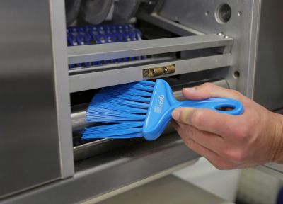 Neliela izmēra birste ar rokturi paredzēta efektīvai tīrīšanai ļoti šaurās vietās, stūros un grūti aizsniedzamās zonās. Pateicoties kompaktajam izmēram, birste ļauj rūpīgi tīrīt spraugas, savienojumus, iekārtu malas un citas problemātiskas vietas. Birste ir īpaši piemērota pārtikas ražošanas uzņēmumiem, piemēram, konditorejām un maiznīcām, kur nepieciešams efektīvi noslaucīt miltus un citus sausos maisījumus no šaurām vietām, iekārtu stūriem un darba zonām. Garie sari (75 mm) nodrošina labu saskari ar virsmu un efektīvu netīrumu savākšanu.