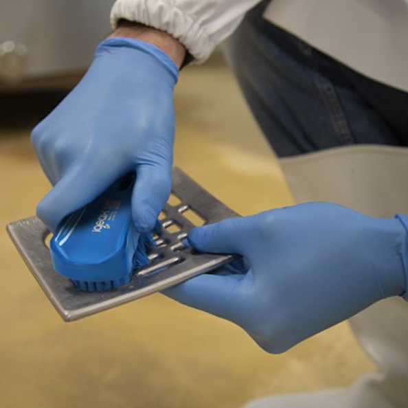 FDA sertificēts, rokas birste izgatavota no materiāliem, kas atbilst FDA prasībām saskarei ar pārtiku, padarot to piemērotu lietošanai pārtikas ražošanas un apstrādes zonās.