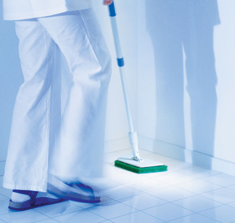 Vileda Professional Padmaster pada turētājs. Aprīkots ar izturīgu līmplāksni rāmja apakšpusē, kas nodrošina grīdas pada fiksāciju, nodrošinot stabilu kontaktu ar virsmu. Ergonomiska konstrukcija ļauj tīrīt grīdas, sienas un griestus, samazinot nepieciešamību darbiniekam pieliekties darba laikā.