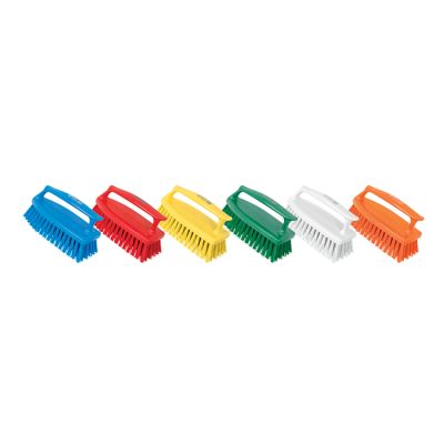 Rokas birste ar vidējas cietības sariem. Tās forma ļauj vienmērīgi sadalīt spiedienu un atvieglo stūru tīrīšanu. Rokturis nodrošina ērtu satvērienu un noapaļotā forma pasargā virsmas uzkopšanas laikā.